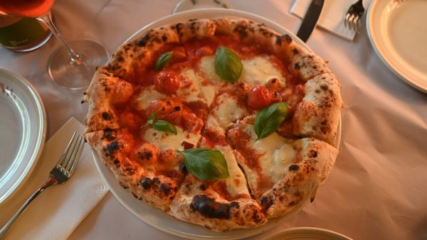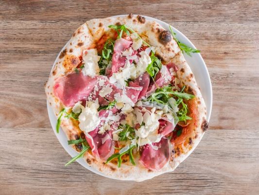 (1# WINNER of Pizza Pala Category at Campionato Mondiale della Pizza, Italy 2022) San Marzano Tomato Sugo, Buffalo Mozzarella, San Daniele Prosciutto, Vine ripened tomato, Parmigiano, Stracciatella, Rucola.