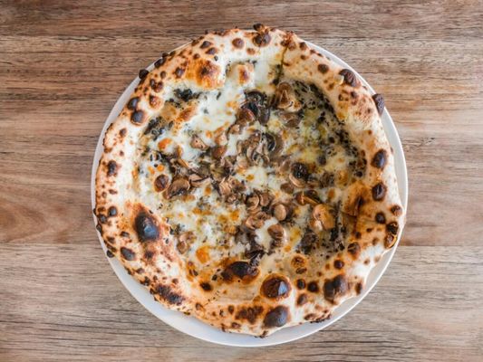 Black Truffle base, mix forest mushrooms, Fior Di Latte, Scamorza, parsley, white Truffle oil