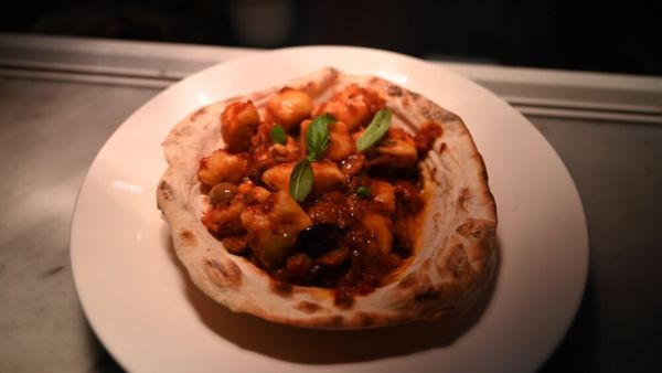 San Marzano Tomato Sugo, Fior Di Latte, Roasted pork belly , onions , roasted eggplant,Aragula