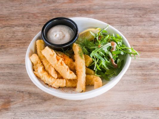 Organic polenta shallow fried, Garlic Aioli , Pecorino cheese.