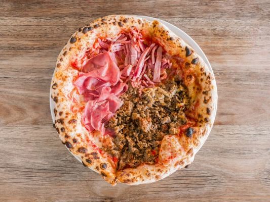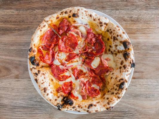 San Marzano Tomato Sugo, Fior De Latte, Cooked Ham, Pork and Fennel Sausage, Porchetta, Pancetta.