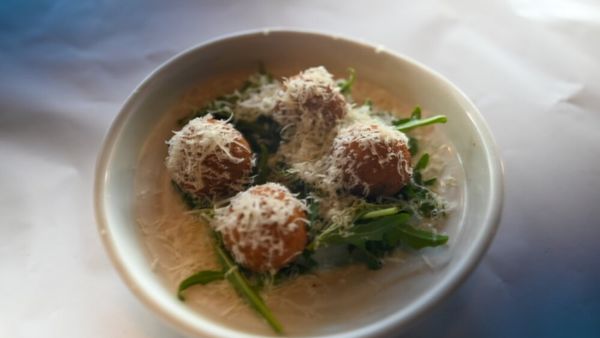 Homemade gnocchi, basil, parsley, Rucola pesto, Walnuts, Pinenuts , Pecorino Romano Cheese.