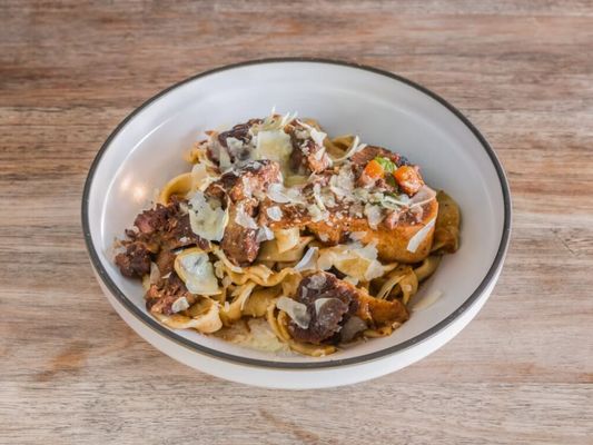 Slow cooked Angus Beef Osso Bucco, sugo Parmigiano Reggiano