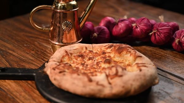 San Marzano Tomato Sugo , Fiore de latte , Oven roasted chicken thigh , Roasted white onions , Parsley , Sun Dried Tomatoes .