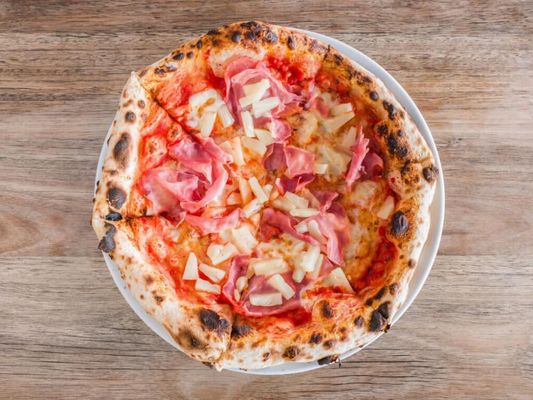 San Marzano Tomato Sugo, Fior De Latte, Pineapple, Ham.