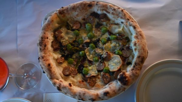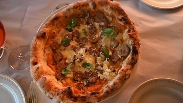 Fiore de latte, pumpkin cream, Nduja, Pecorino, Italian Sausage, Basil.