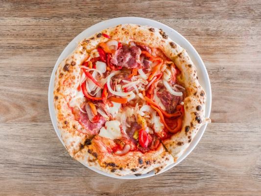 San Marzano Tomato Sugo, Fiore De Latte, Soppressa Mild Salami, Roasted Capsicum, Onions.